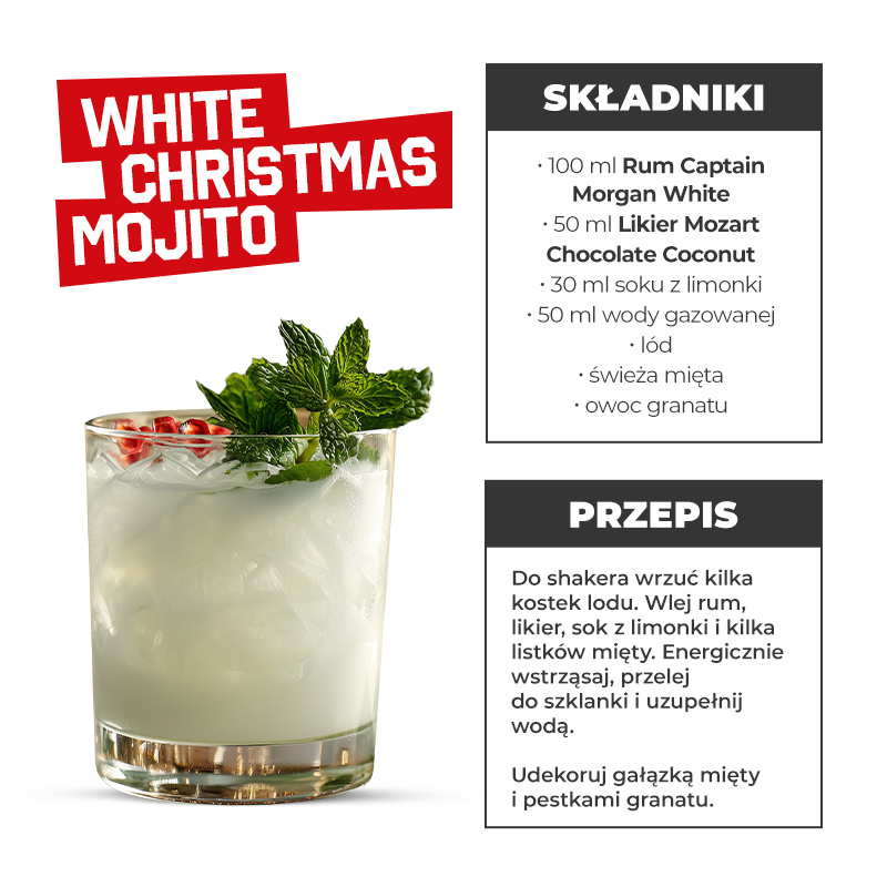 Stwórz wyjątkowy koktajl White Christmas Mojito z naszym starannie dobranym zestawem alkoholi. Doskonały wybór na świąteczne spotkania i wyjątkowe okazje!