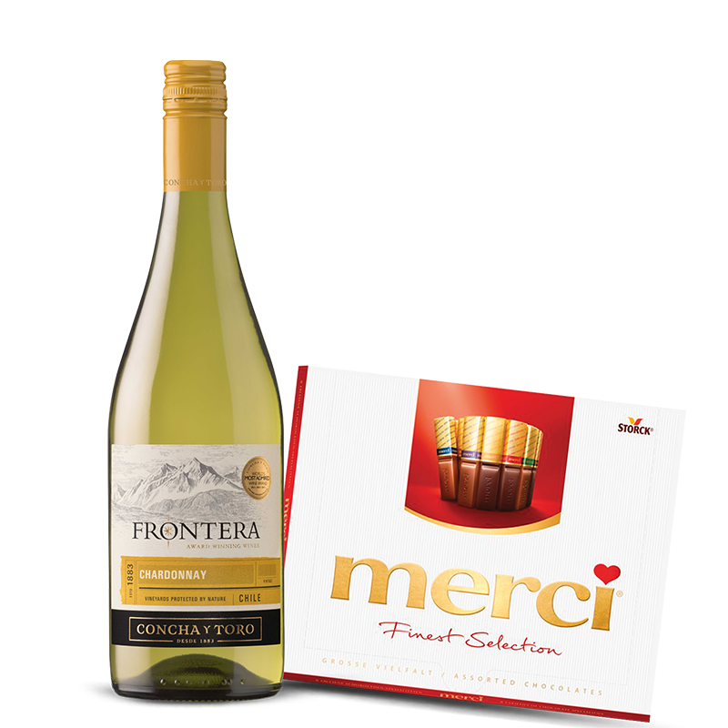 ZESTAW WINO FRONTERA CHARDONNAY + CZEKOLADKI MERCI