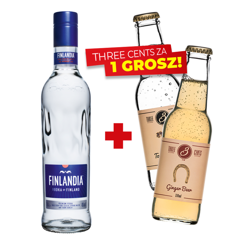 ZESTAW WÓDKA FINLANDIA 0,50L 40% + NAPÓJ THREE CENTS ZA 1 GROSZ